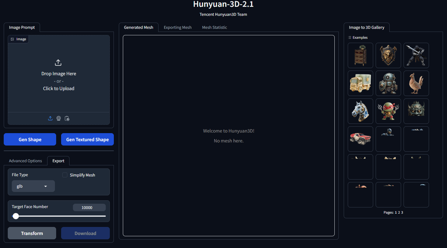 Head over to the Hunyuan 3D 2.1 page on Hugging Face. Upload the image that was generated or describe the object using the same phrase. Once it finishes rendering, download the .glb file.